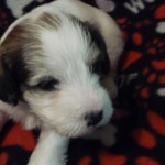 Tassie’s apricot females are beautiful little girls! The one with white markings on her face is the runt of the litter. They have such beautiful coats. Right now their eyes are just trying to open.