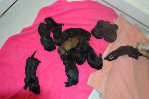 Syrah and her 11 beautiful new babies! They are just lovely! They were born Friday 2/3 into early morning 2/4. It was a long night for Renee & Bill. All are doing great!