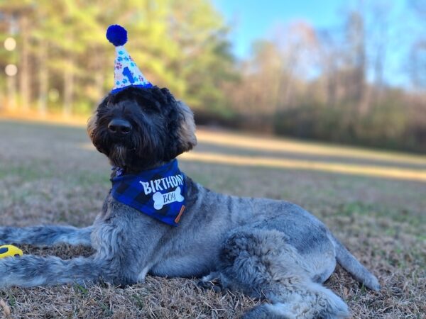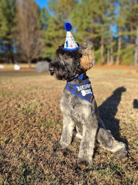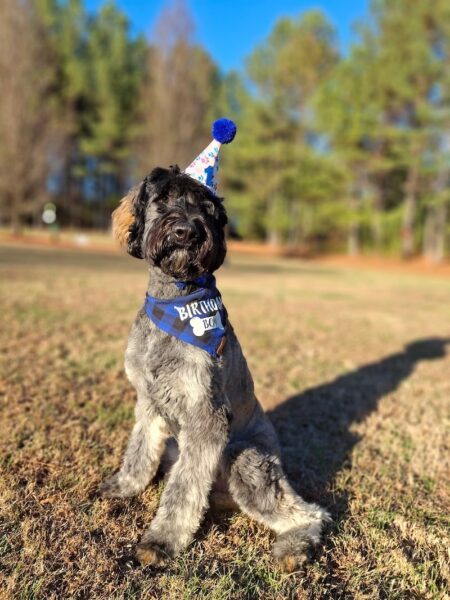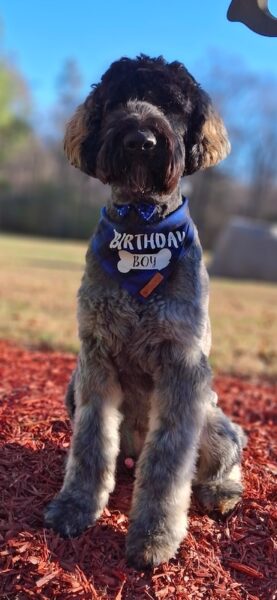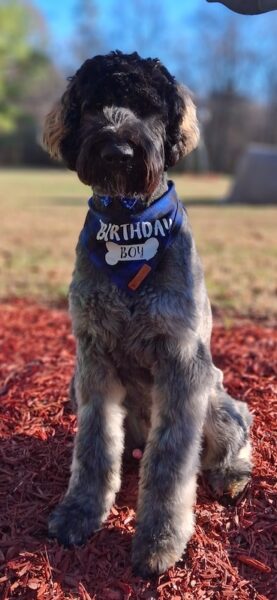 Our beautiful handsome giant Schnoodle Elijah turned 1 year old on November 28th. He is a good boy. Very attached to momma Renee and pouts when he can’t go. He smiles like his momma Ingrid when he is happy and excited. Still a puppy but getting there. Happy Birthday Elijah!!