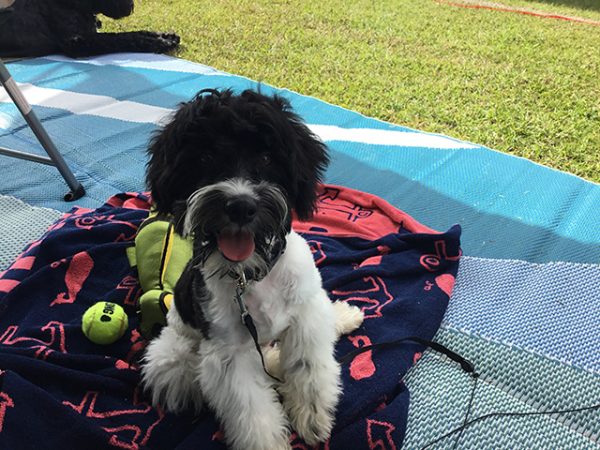 February 2020 – Our sweet mini Schnoodle Luke. He is the best. Resting in the sun with his ball.